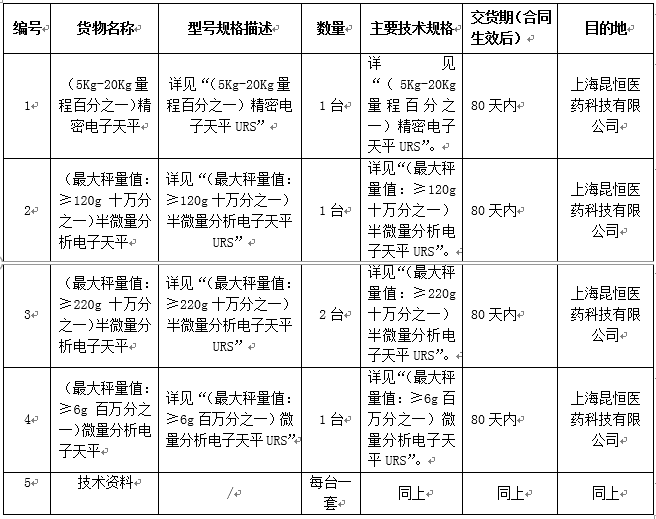尊龙凯时-人生就是搏集团上海昆恒医药科技有限公司电子天平采购招标公告