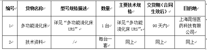 尊龙凯时-人生就是搏集团上海昆恒医药科技有限公司多功能流化床采购招标公告