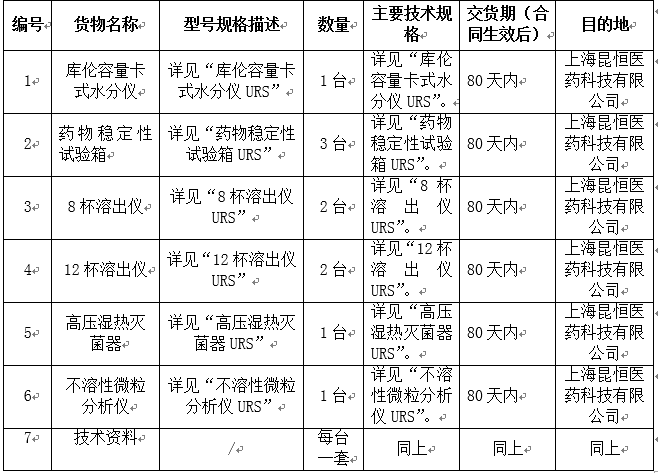 备注:投标文件请于投标截止时间之前递交或邮寄至上海市浦东新区高科中路1976号上海昆恒医药科技有限公司。