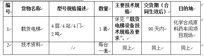 尊龙凯时-人生就是搏集团马金铺化学合成原料药车间载货电梯设备采购招标公告