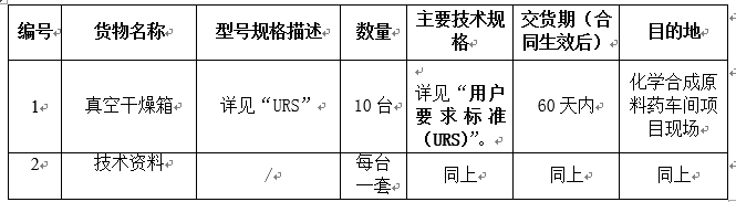 尊龙凯时-人生就是搏集团化学合成原料药车间真空干燥箱设备采购招标公告
