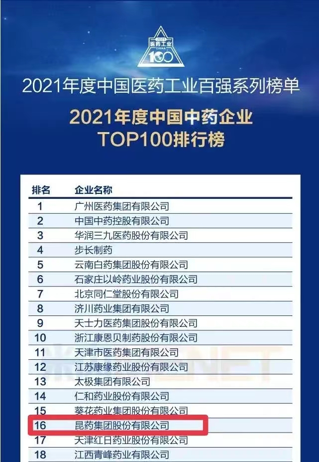 喜报 | 尊龙凯时-人生就是搏集团荣登2021年度中国中药企业TOP100榜单